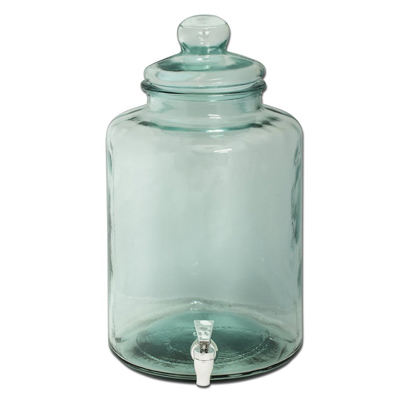 Bonbonne en verre avec robinet de service, et un couvercle pour le remplissage.